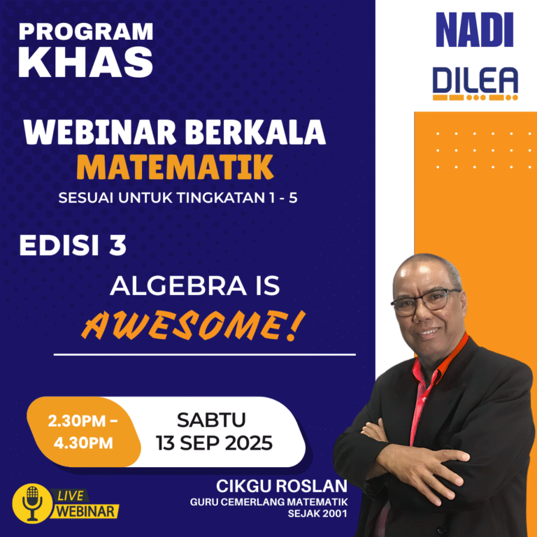 Tarikh : 13 September 2025Masa : 2.30 petang – 4.30 petangLokasi : NADI Pusat BDD Kampung Baru Pokok Assam. TujuanMemberi pendedahan dan meningkatkan kefahaman pelajar Tingkatan 1–5 dalam topik Algebra melalui pembelajaran interaktif secara webinar. Aktiviti– Sesi Webinar Matematik […]
